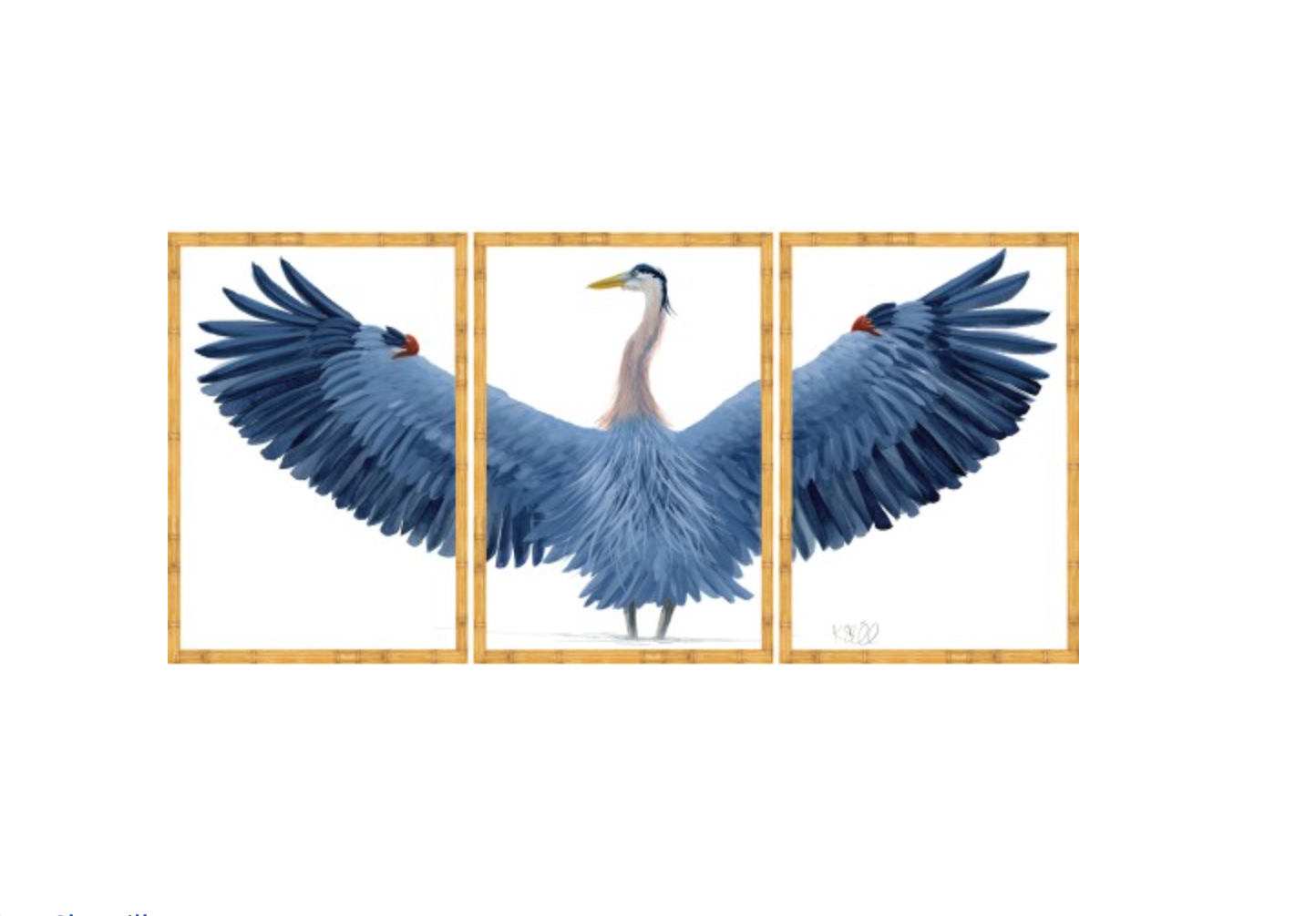 - Blue Heron 12 Tritpych with Bamboo 52x26