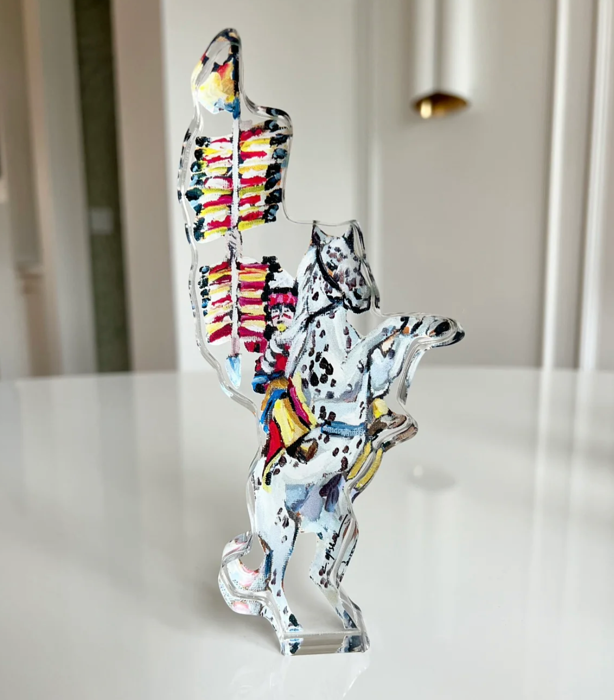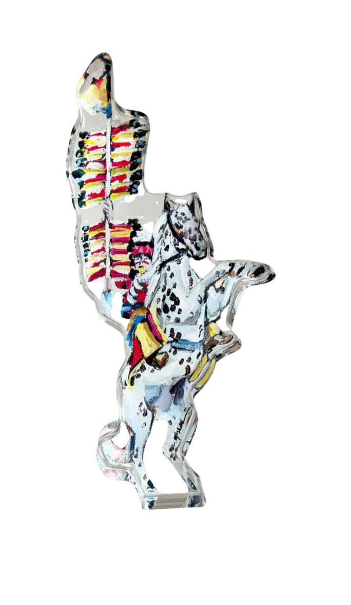 - The art is affixed to a thick, weighted protective acrylic block giving a three dimensional appearance