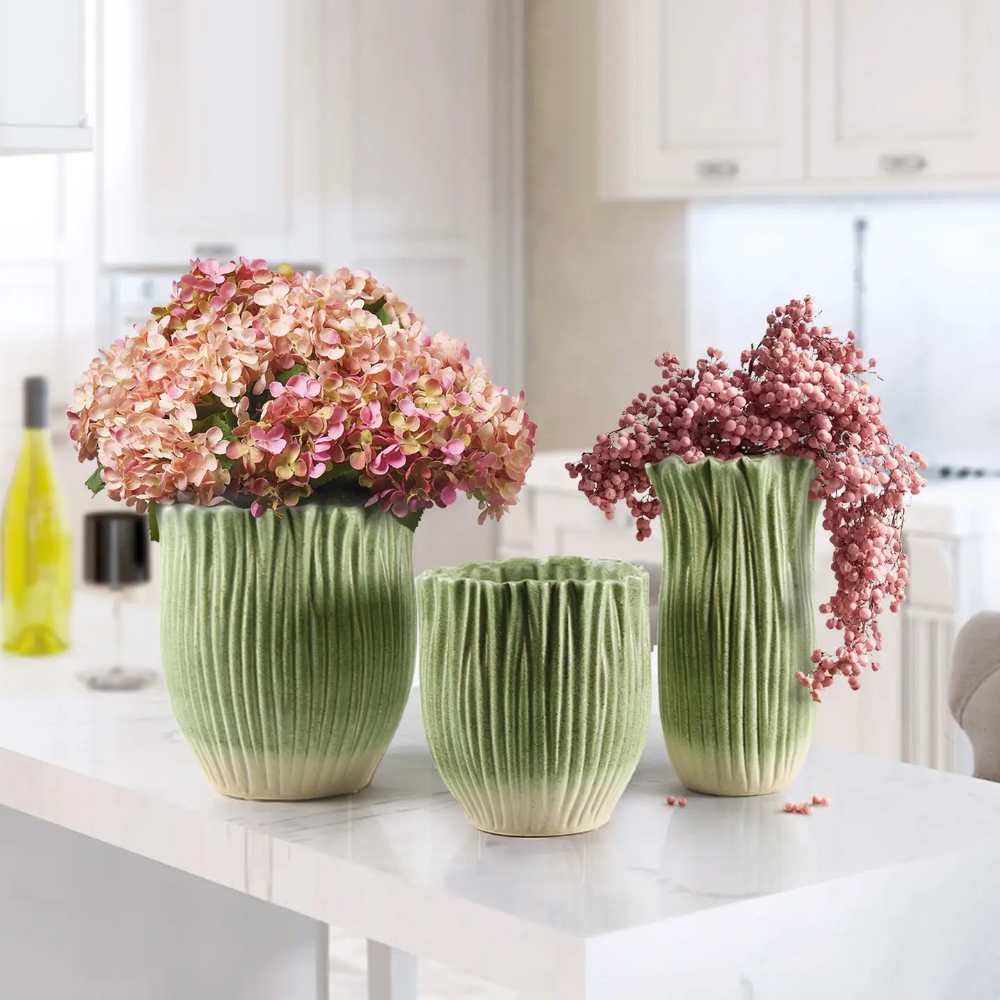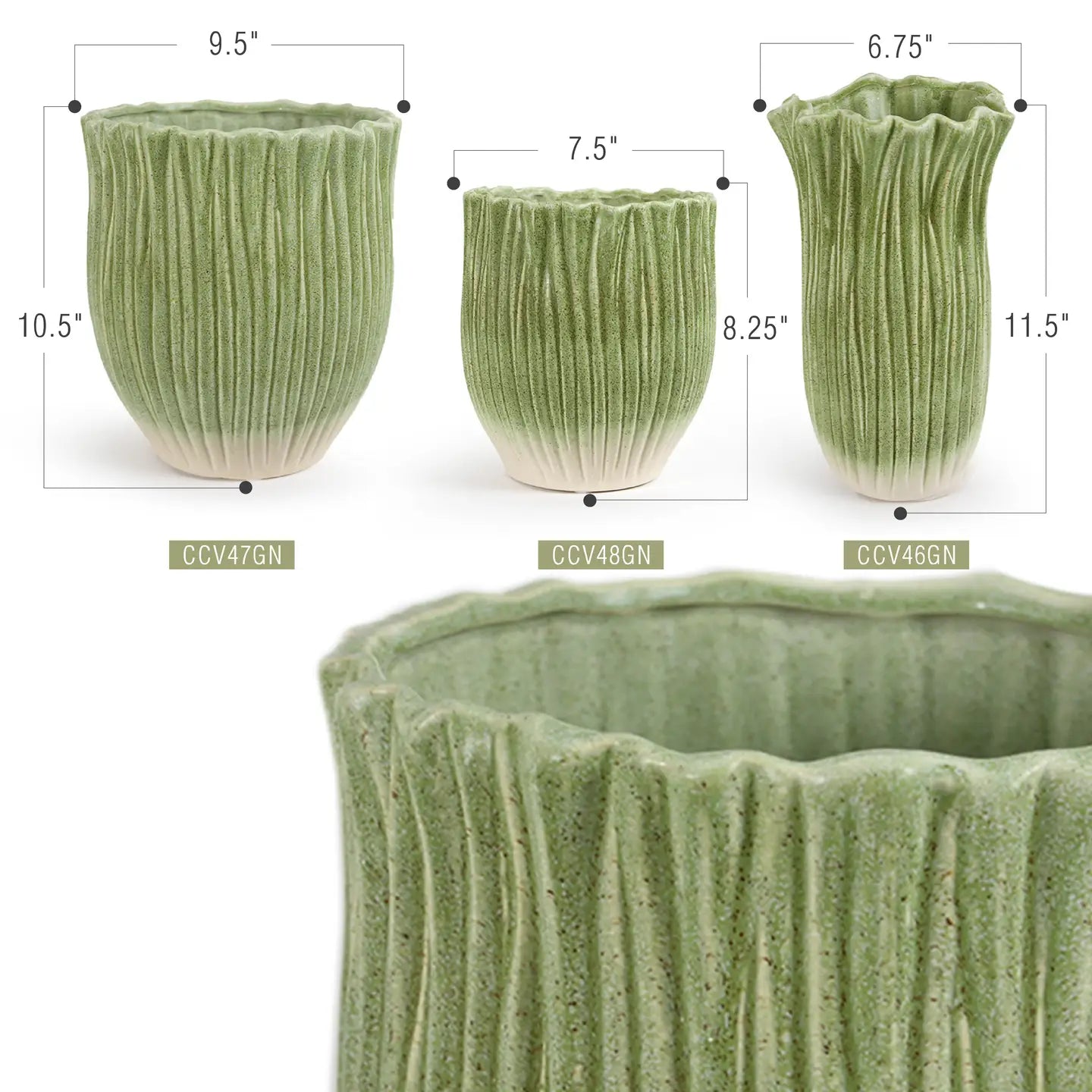 This two-tone ceramic pot collection with ruffle edges is a striking fusion of color and texture, perfect for those who appreciate bold yet refined design. The pot features a smooth, curved silhouette crowned by delicate ruffle edges, giving it a graceful, organic appearance. The ruffled rim adds a sense of fluidity, resembling the soft folds of fabric, while a two-tone finish creates a stunning visual contrast. Ideal as both a decorative statement and a functional item, this collection can be used to display plants, flowers, or stand alone as sculptural accent.