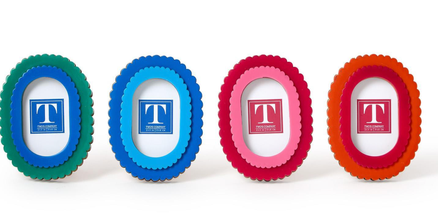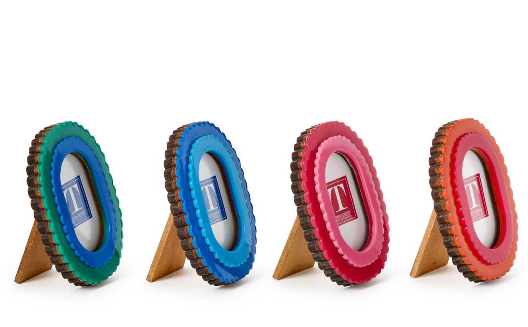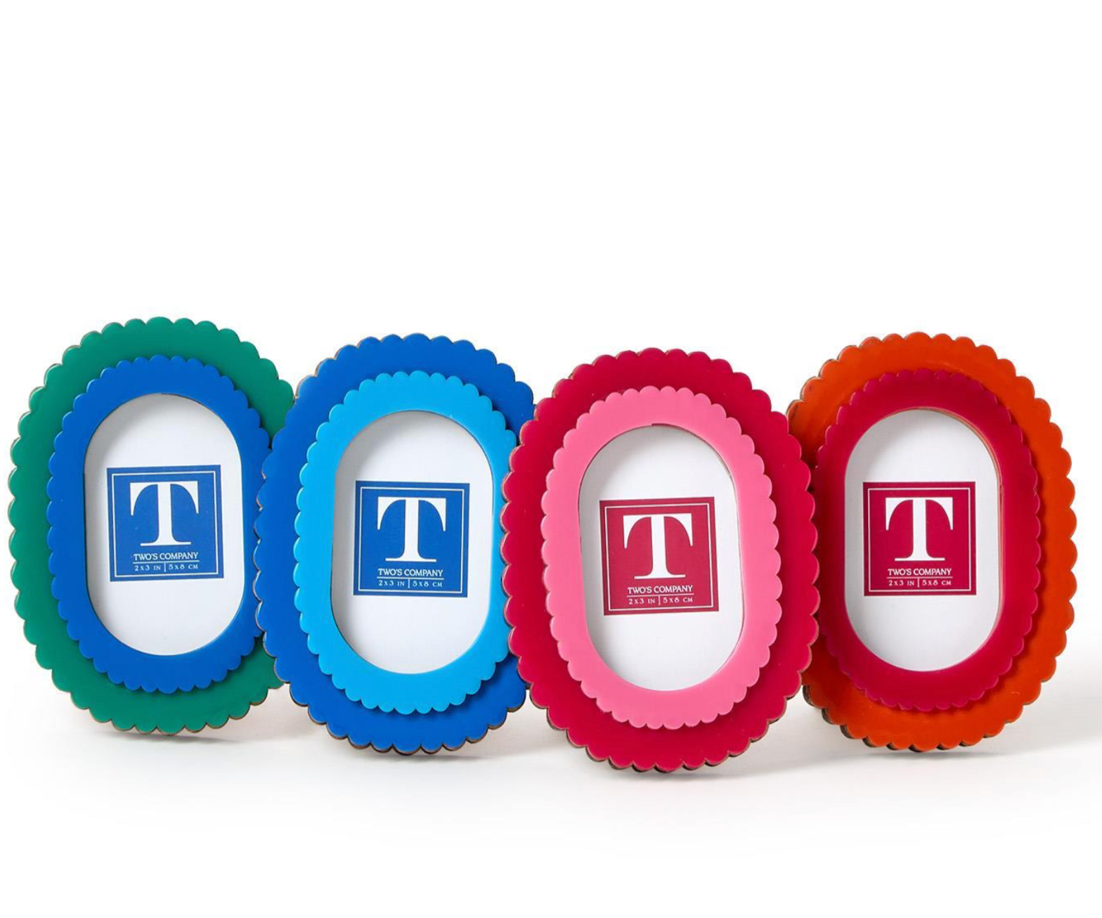 Bring a pop of color and whimsy to your living space with our Double Scalloped Edge 2x3 Photo Frame. Handcrafted with care, this frame comes in four stunning colors - Green, Blue, Pink, and Orange - to perfectly complement any decor style.