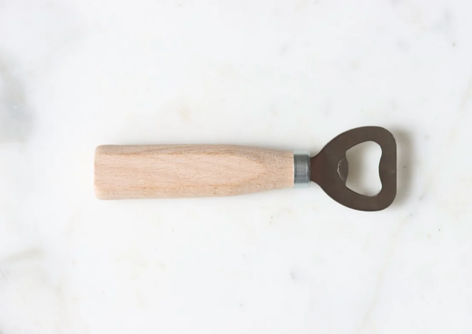 This bottle opener is perfect for travel or everyday use. Its wood handle and stainless steel top make it both stylish and practical.