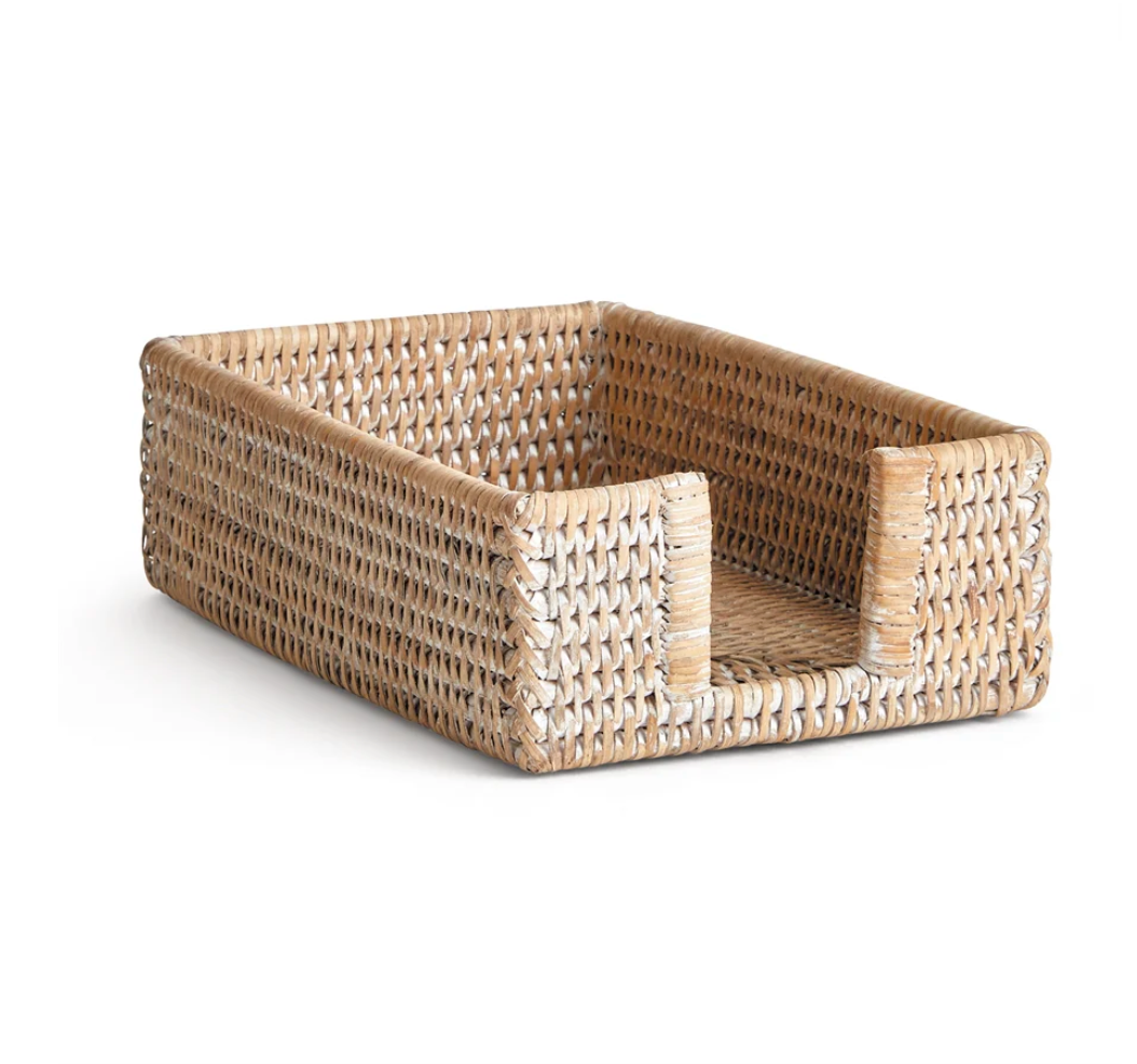 Neatly contain your cocktail napkins in casual, classic whitewashed rattan style. 100% handmade and woven into tight, uniform bands for long-lasting quality.