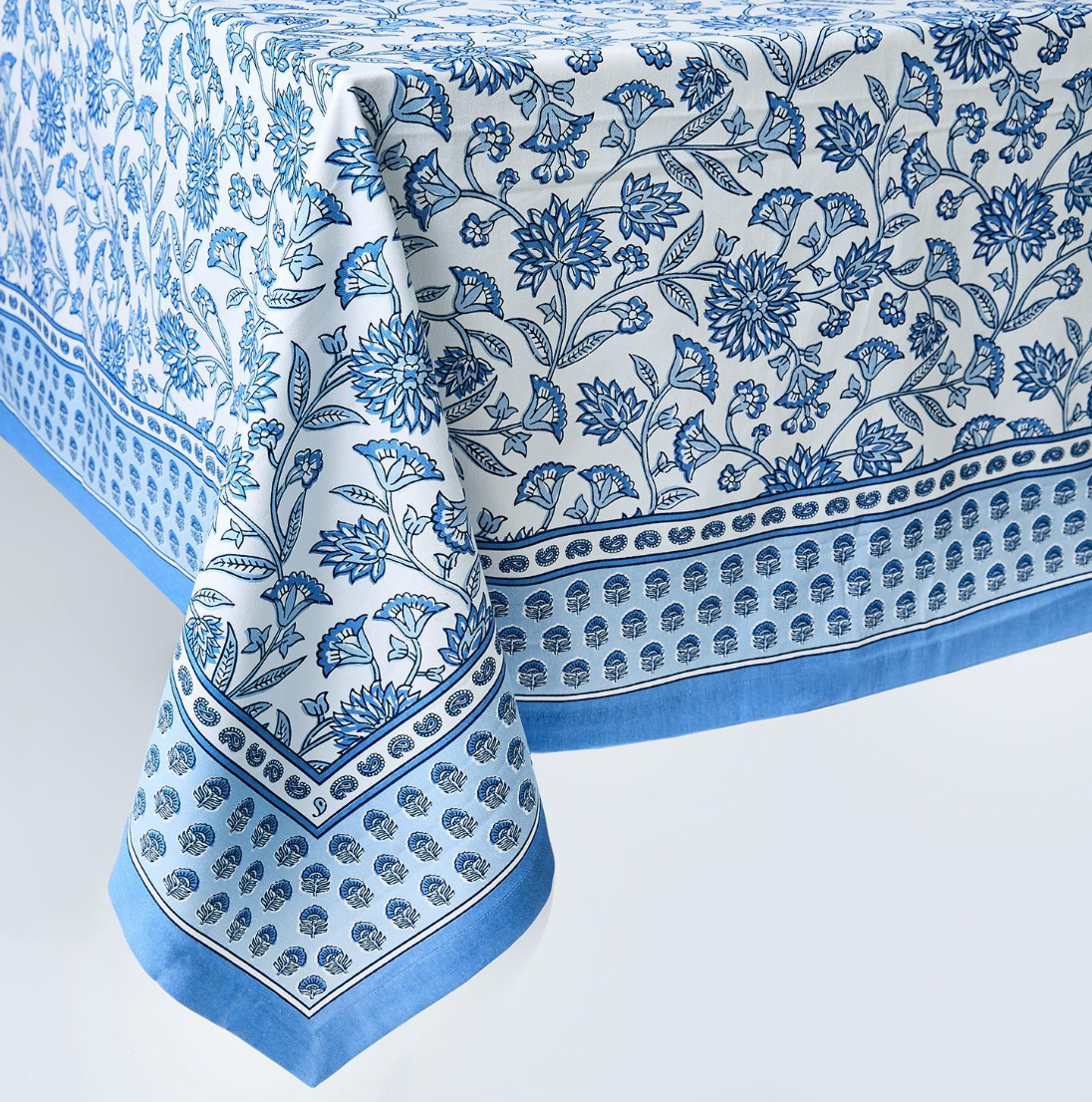 Blue Block Print Tablecloth 60x120