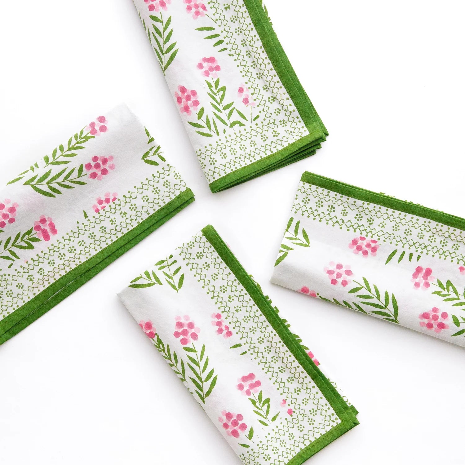 Phlox Pink napkins pair beautifully with Pomegranate Green or Rose ceramics and natural textures like bamboo and rattan.