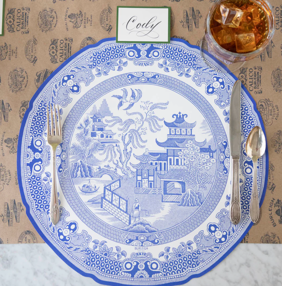 In collaboration with Burleigh, we've brought the classic Blue Willow design to your table as a die-cut plate. Mix and match between the Blue Willow Placemat and Blue Willow Runner to coordinate the placemats to your dinnerware. Our paper placemats add an elegant touch to any tablescape.