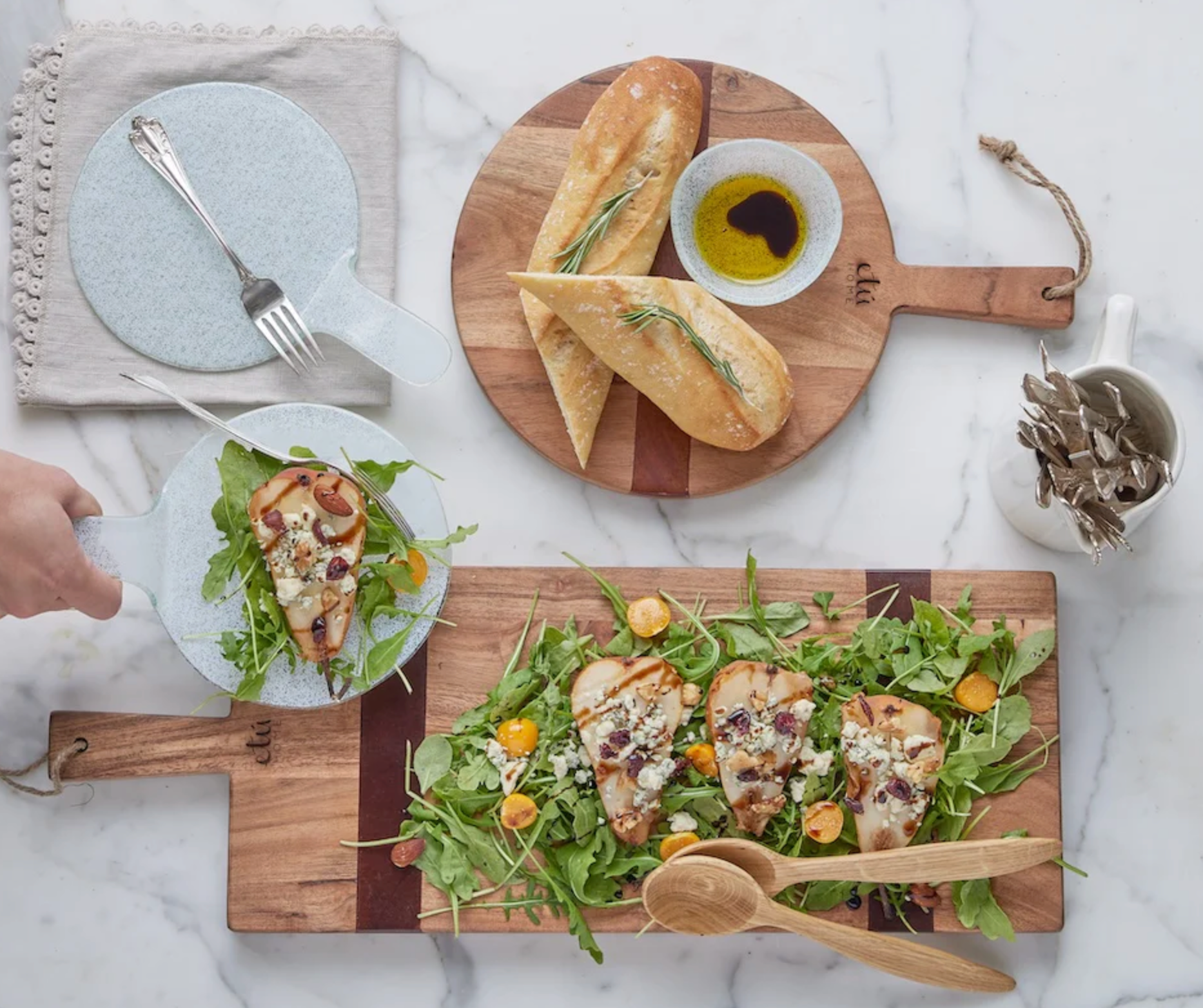 The Natural Charcuterie Board is a timeless kitchen staple, crafted to enhance every gathering and add warmth to interiors. The acacia wood board is perfect for serving charcuterie, cheese, fruit, crudités, main courses and even desserts. Designed for versatility, use the board as a charming decorative accent against kitchen backsplash or hung on the wall.