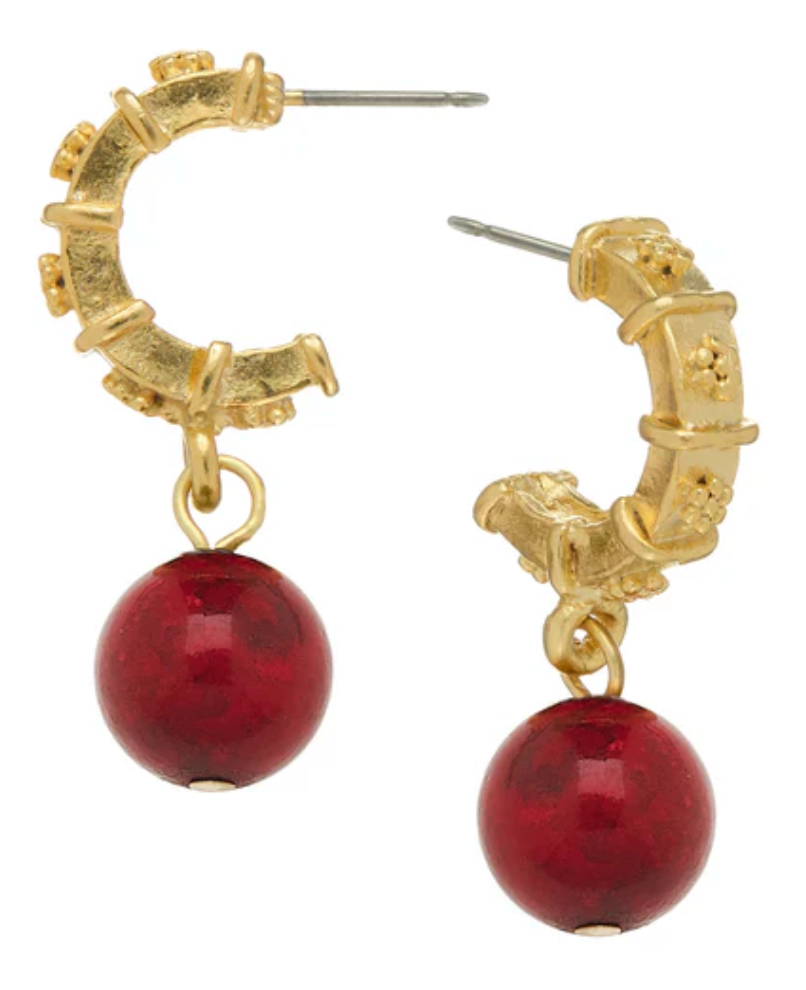 The Carolina Drop Hoops are an instant classic that will never go out of style. Featuring a textured and lightweight hoop with a genuine stone bead drop, these earrings effortlessly add a bit of movement and color to any look.