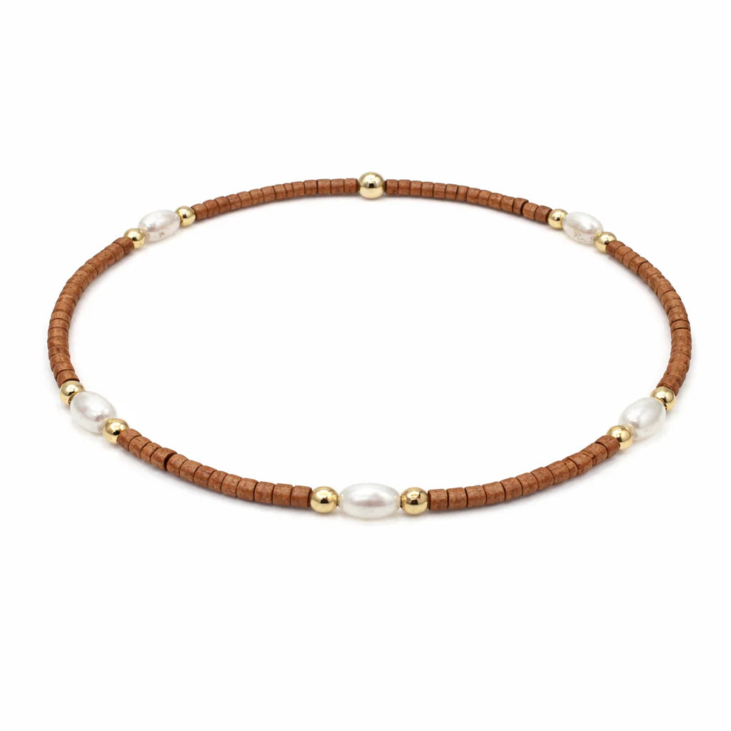 Our Game Day bracelets with added natural rice pearls patterned between gold-filled beads are the perfect way to cheer on your favorite team! Stack multiples to show your team spirit. 14k gold-filled waterproof beads mixed with colorful seed beads on a 7 inch stretch bracelet in a variety of colors.
