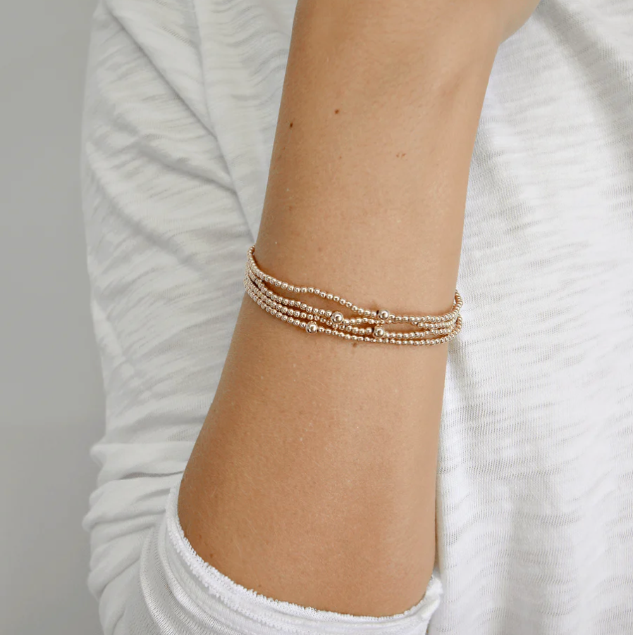 Our best-selling 2mm Gold Filled Waterproof bracelet (with a single 4mm), part of the Erin Gray waterproof collection. Wear it alone or stack it for a versatile look.