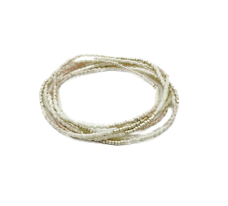 The Maui seed bead 7 stack bracelets with 3mm, 14k gold-filled beads. Delicate, subtle and fun, a new staple to your jewelry rotation. Part of our erin gray waterproof collection.