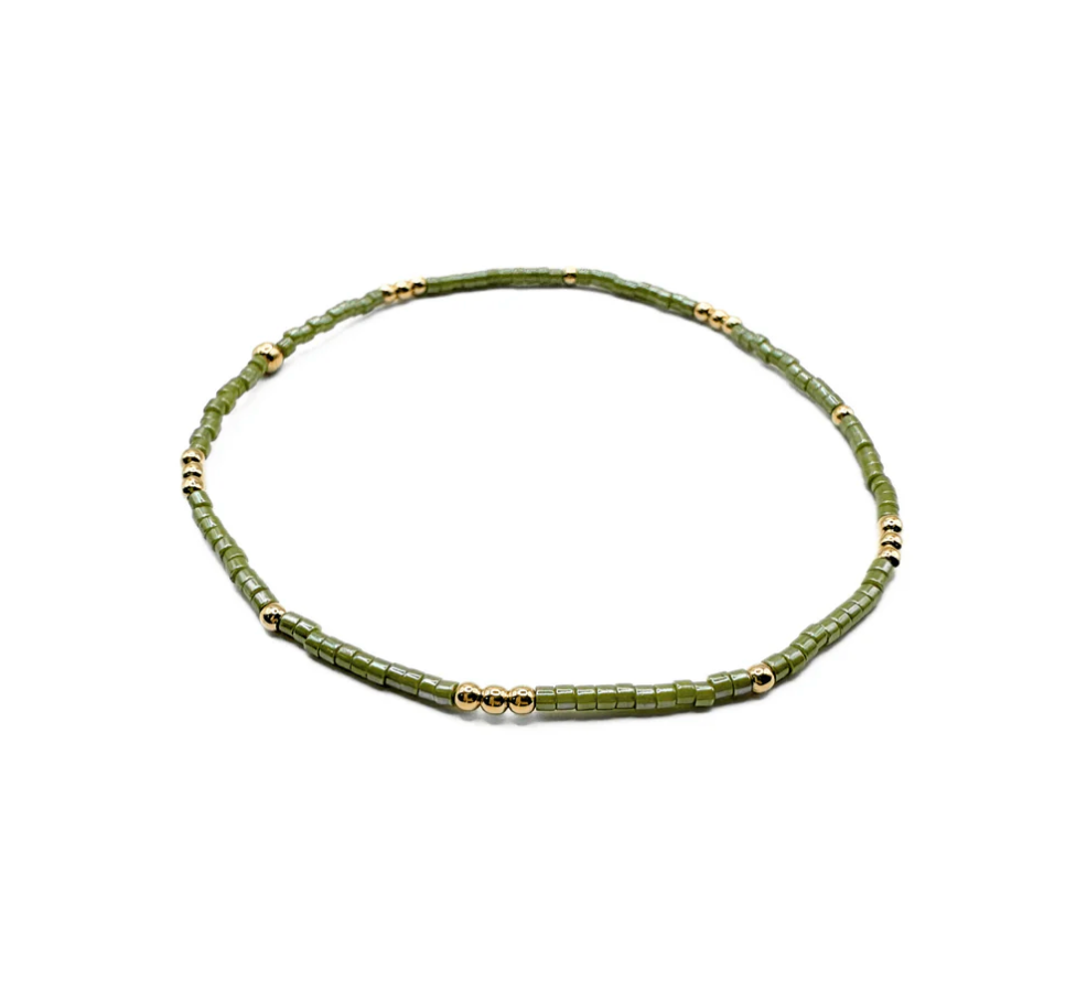 Just a hint of color in this 2mm beaded stretch Newport bracelet with 14k gold-filled beads and carefully-selected natural bead colors. Simple and sophisticated. Stack them. Gift them. Love them. Available in multiple color patterns. Size 7.0" or 6.5"