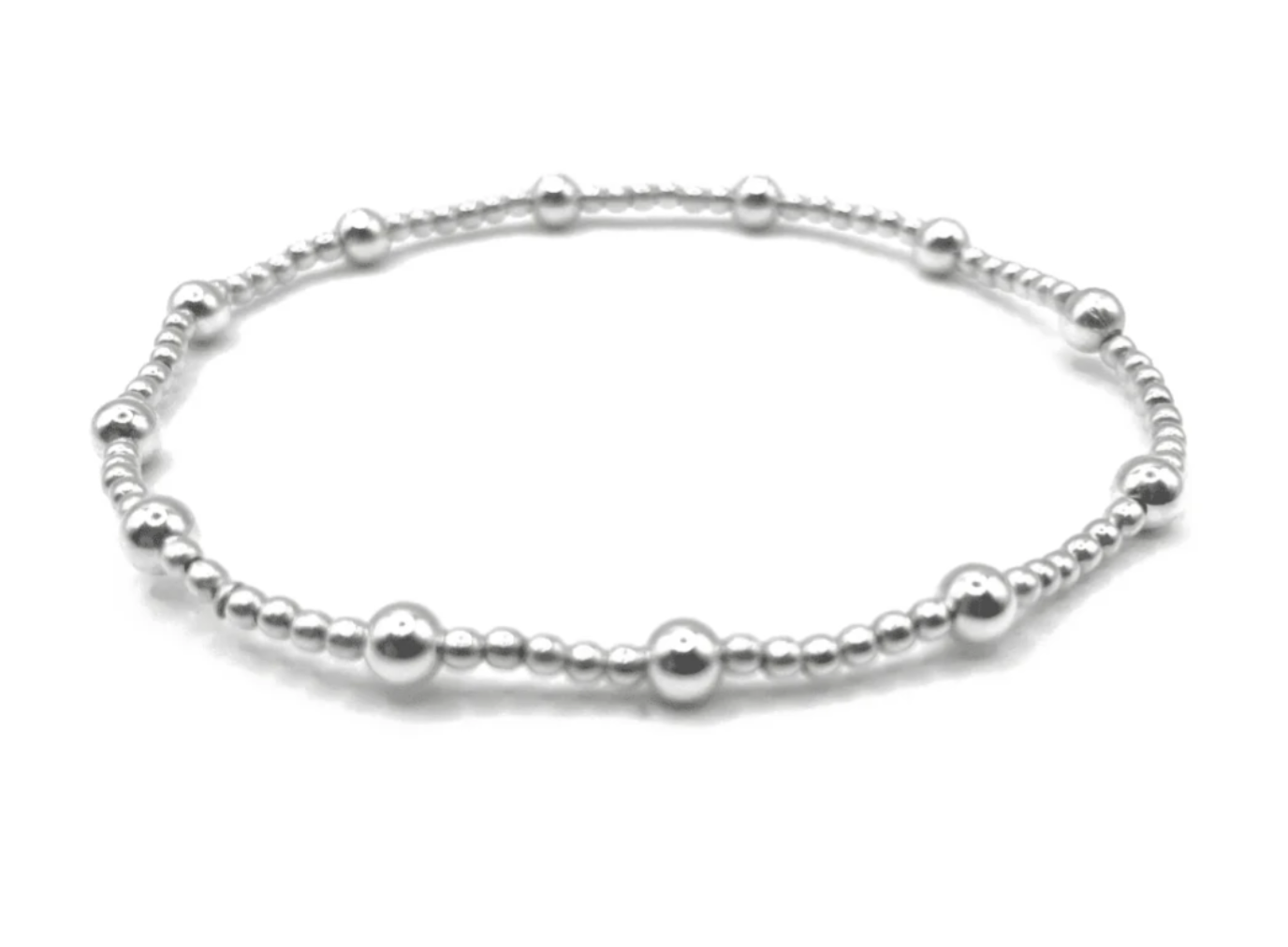 This 2mm sterling silver stretch bracelet is accented with twelve 4mm gold-filled beads, designed to be worn solo or stacked for a layered look. It’s part of the erin gray waterproof collection, combining elegance with durability. Offered in a 7" size.