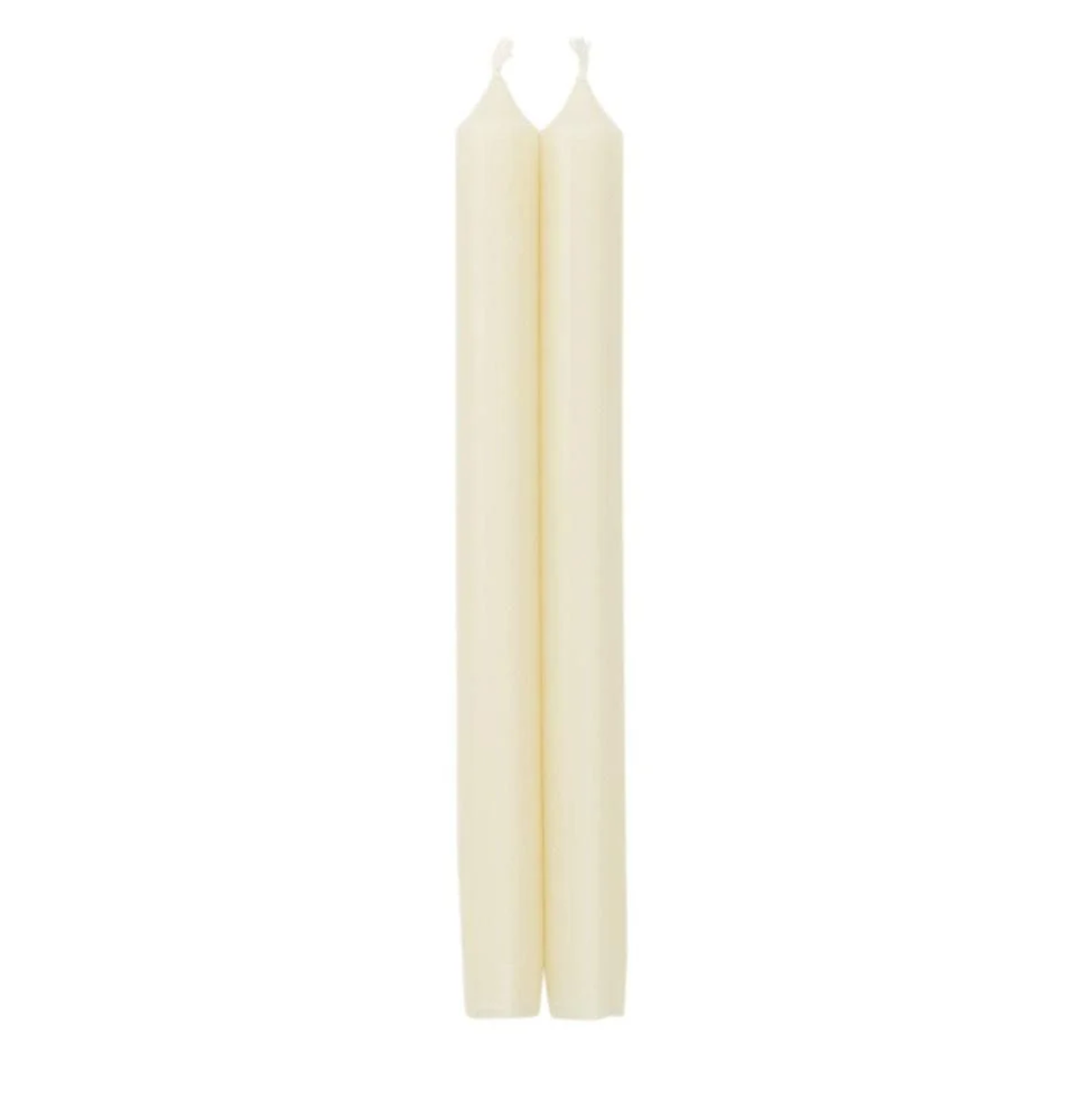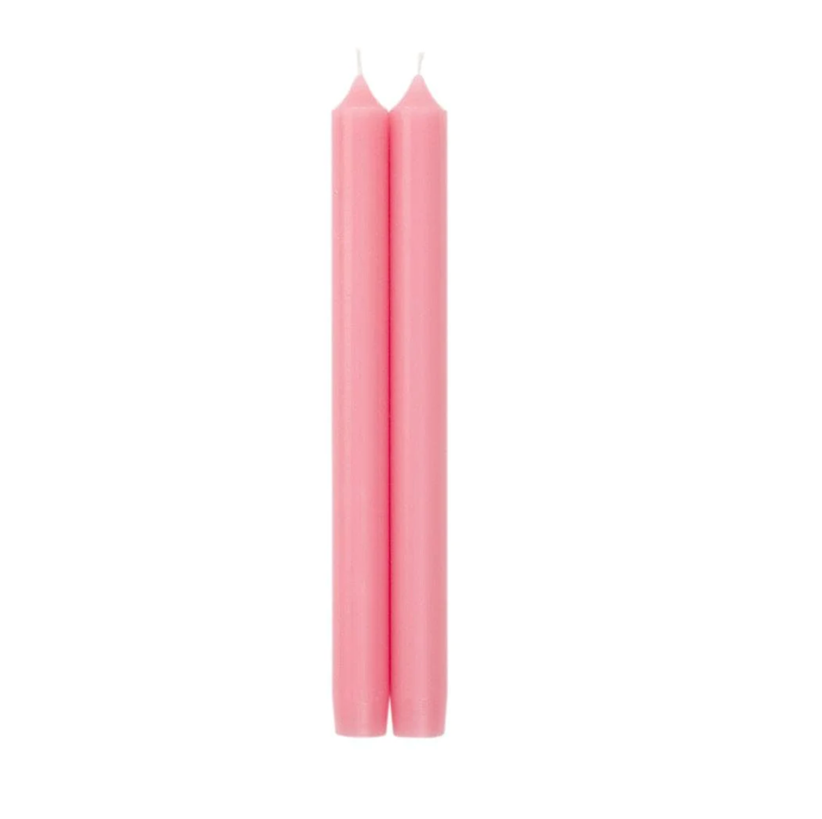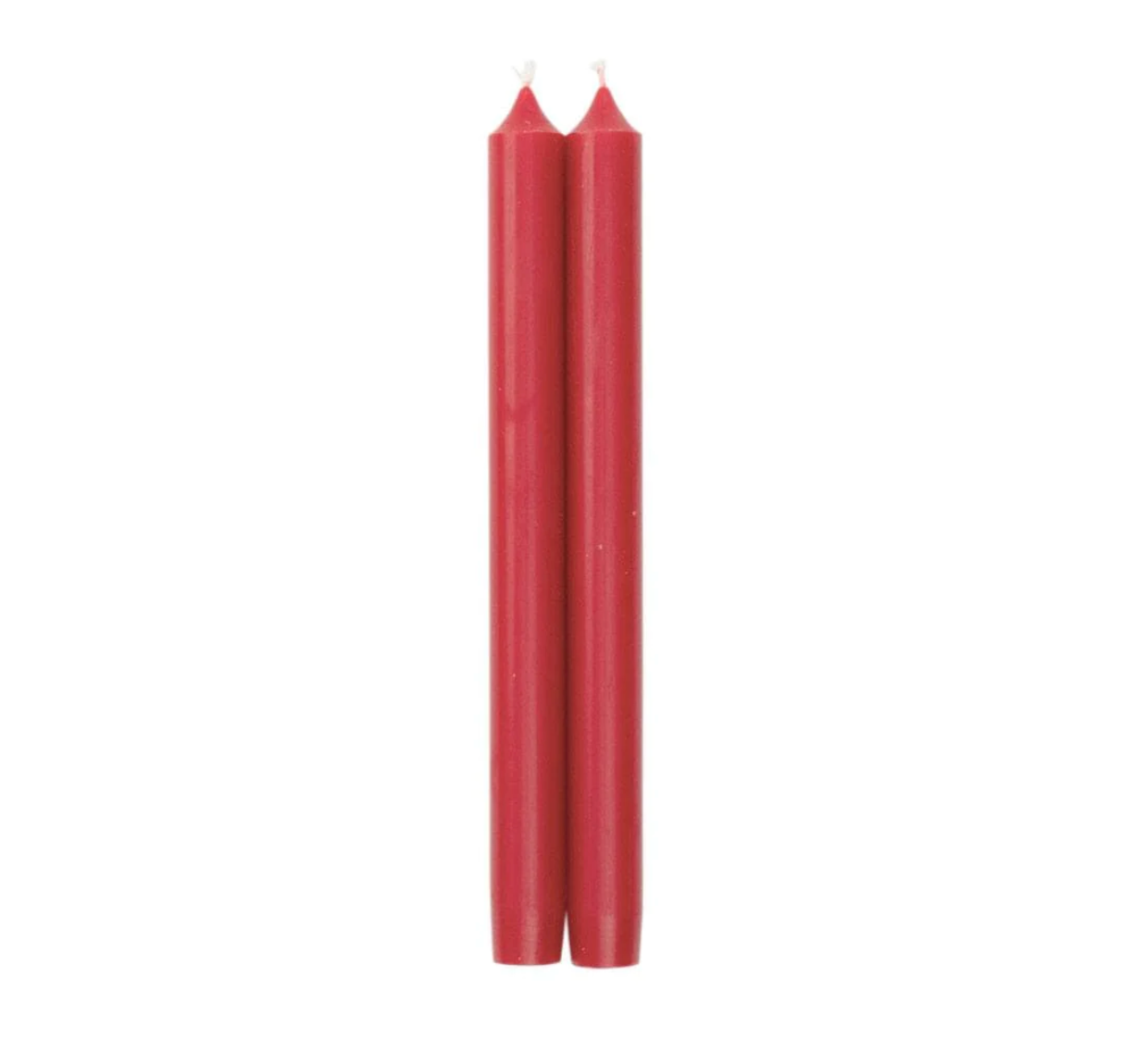 Our elegant 10-inch crown candles are made with a paraffin and palm wax blend. To ensure a clean burn, they feature a lead-free cotton wick. Smokeless and dripless, they can be safely burned from your tabletop to your mantle without worry of a mess. The pairs are available in a variety of beautiful through-colors or metallic finishes. Our assortment that ensures candles are available to coordinate with any Caspari table setting or décor. Effortlessly add warmth and charm to your table when you display any of our crown candles in a standard candlestick or tapered candle holder.